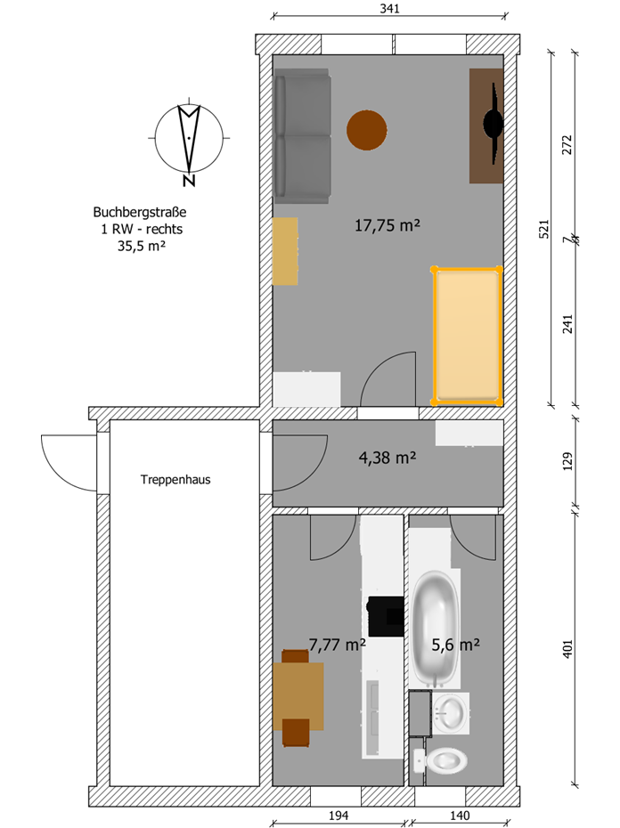 Wohnungsgröße: ca. 35,5 m²